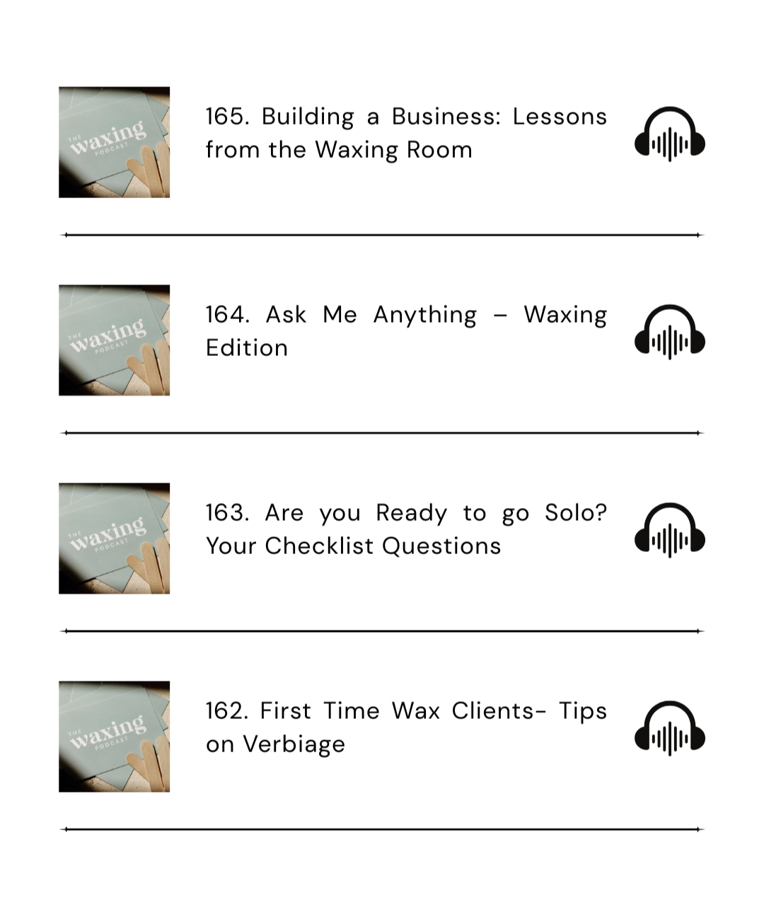 The Waxing Podcast is a place for estheticians, educators, and beauty business owners to share what it really looks like to build a thriving career in the waxing studio, med spa, and beyond. From solo journeys and scaling a business to treatment tips and brand-building insights, each episode brings thoughtful, unfiltered conversations that will help you grow professionally and personally.